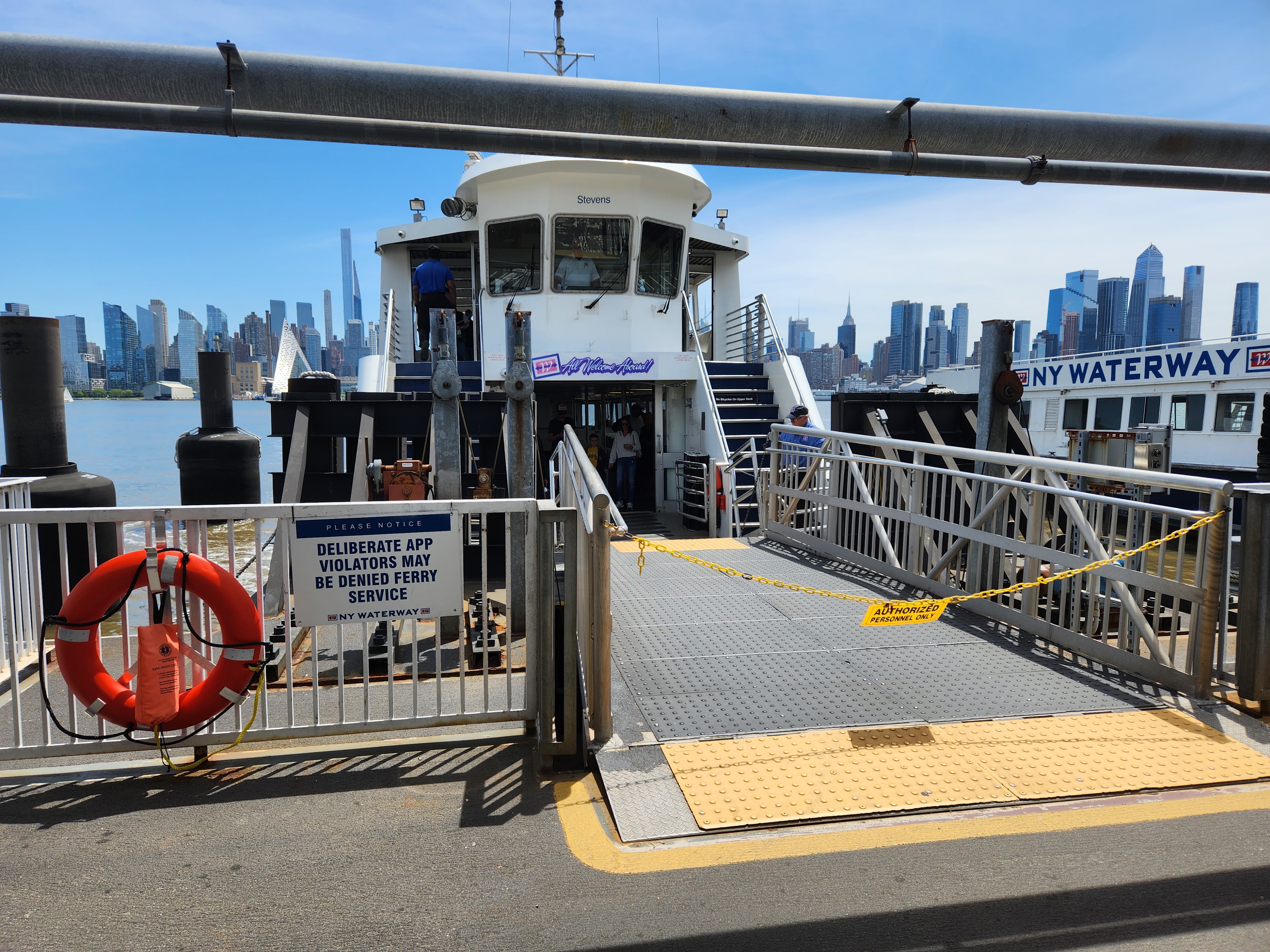 뉴저지에서 뉴욕으로 가는 방편 중에 가장 빠른 방법이라고 알려진 ferry를 타보았다. weehaken에 있는 선착장을 이용했는데 선착장으로 직접 가기 위해서 걸어가는 것은 힘들기 때문에 셔틀 버스가 다닌다. 단지 거리상의 문제가 아니라 상당히 가파른 언덕길을 내려가고 또한 인도가 좁기도 좁지만 차도 바로 옆에 있는 문제 때문에 버스 타는것을 추천한다. 버스 스탑장소와 시간은 아래 site에서 확인이 가능하다. https://www.nywaterway.com/busstopsschedules.aspx Bus Routes & Schedules www.nywaterway.com 버스타는 비용은 무료 이고 선착장에서 ferry를 타고가는 요금은 편도 $9이다. 뉴저지 트랜짓 버스로 맨하탄을 간다고 이용했을때 (..